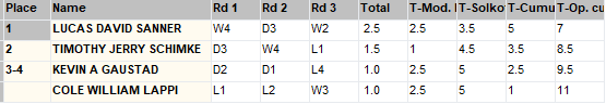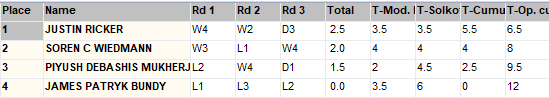 Hi everyone. The results from the February Quads are below. It has been submitted for rating. Thank you to all the players for their patience as I navigated some family issues. And thank you to Dennis for stepping in as Assistant TD. 🙂