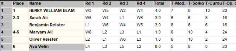 Henry Beam, second grade at Lincoln, finished in first place with at perfect score of 4-0 in the K2 unrated section.